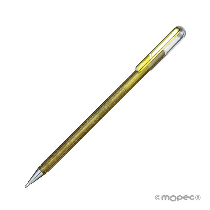Divertido rotulador en gel con de color dorado metálico y con efecto purpurina. Perfecto para poder escribir y dibujar tarjetas de presentación, de detalle para regalos de eventos como Comuniones, bodas, bautizos... Un producto muy útil y económico imprescindible para mejodrar las presentaciones. Disponible en otras combinaciones de colores.