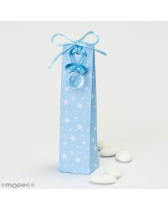 Scatola stelle celeste con ciuccio 5 confetti al cioccolato
