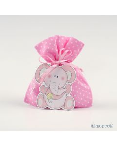 Ciondolo con strass bimbo, laccio rosa e 5 confetti ciocco.