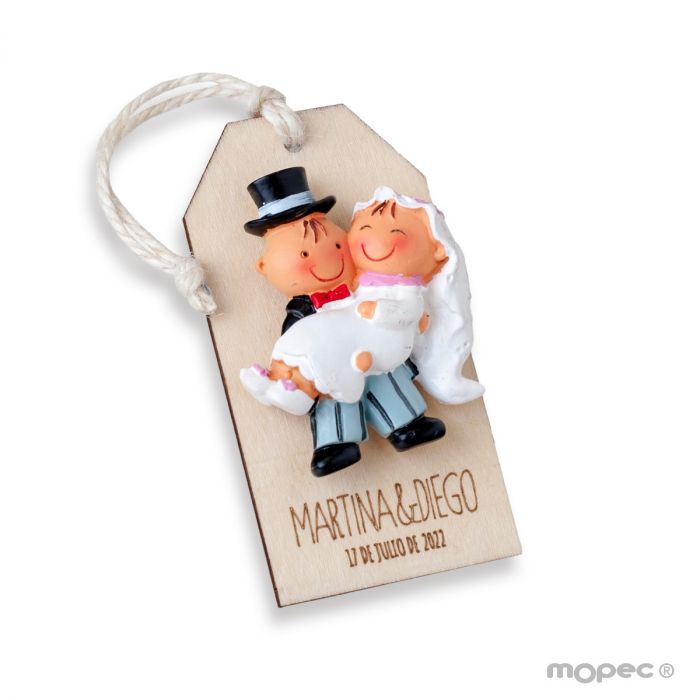Calamita Pit&Pita sposa in braccio in biglietto di legno