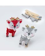 Ciondolo in feltro rosso con al centro un simpatico cerbiatto con corna dorate in legno.